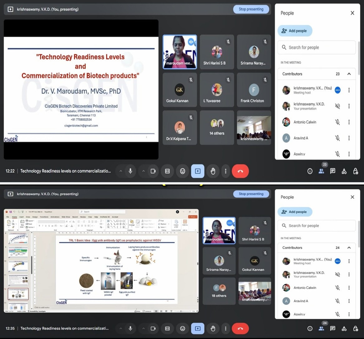 IIC Activity - An Expert Talk by Dr. V. Maroudam, CisGen Biotech., Chennai on “Technology Readiness Levels and Commercialization of Biotech Products” for the benefit of IFBT students on 28.02.2025